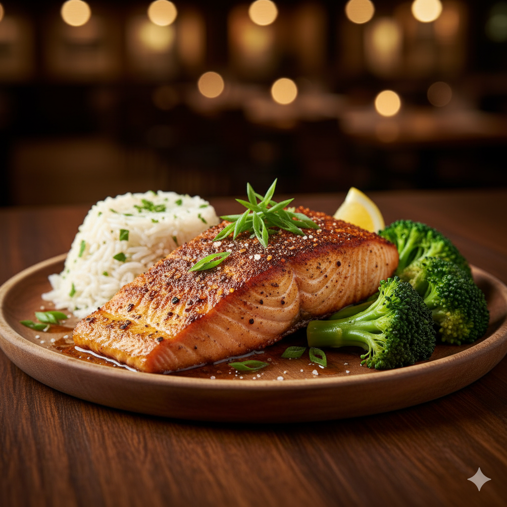 Pan-seared salmon finished with bold Cajun spices. Served with 2 sides.